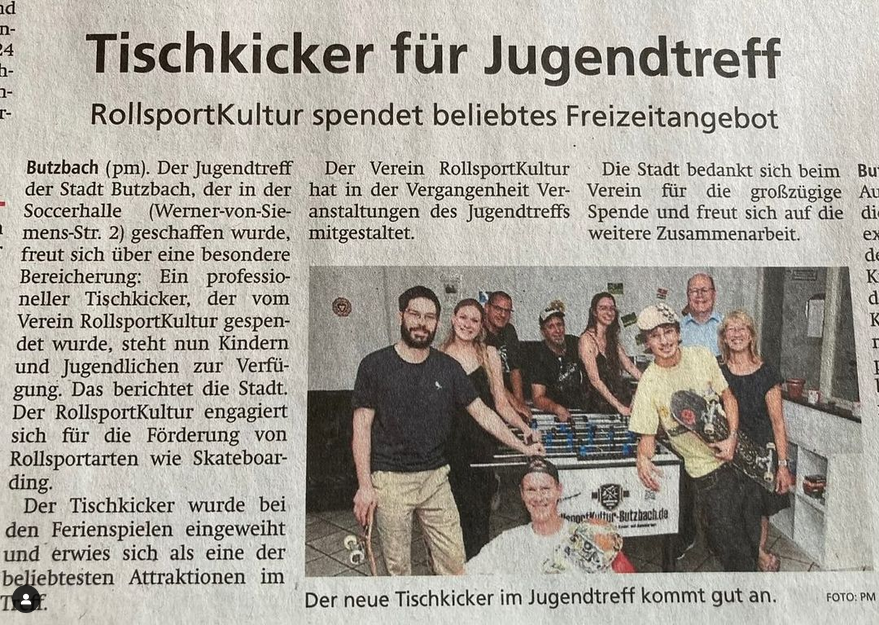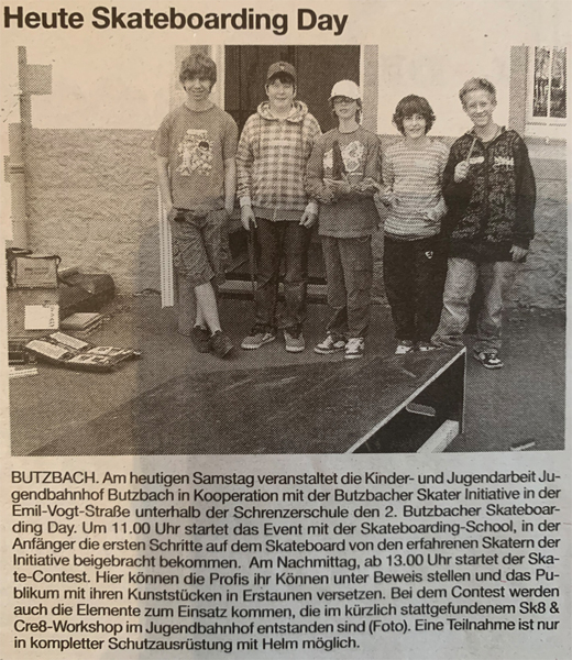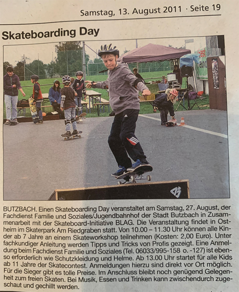 13.06.2026 | Skateboard Anfänger-Workshop und Eröffnungsfeier am neuen Butzbacher Skatepark (Soccer-Arena, Werner-von-Siemens-Straße 2) |