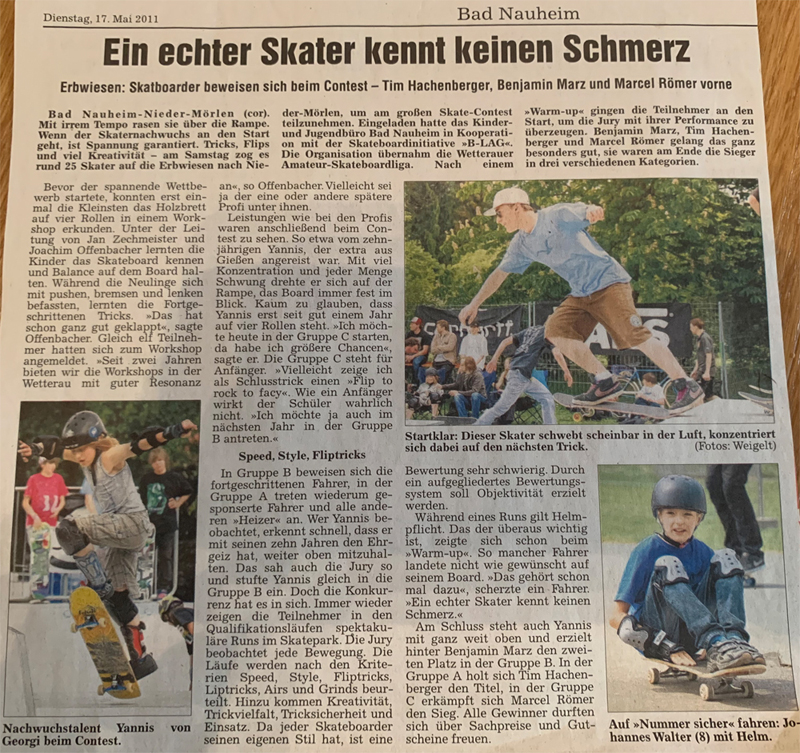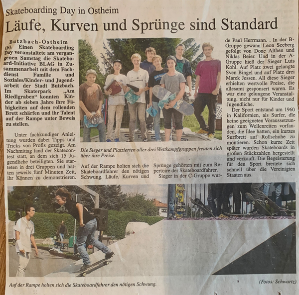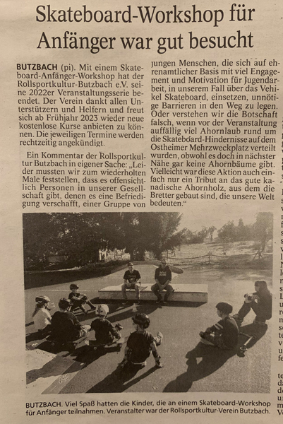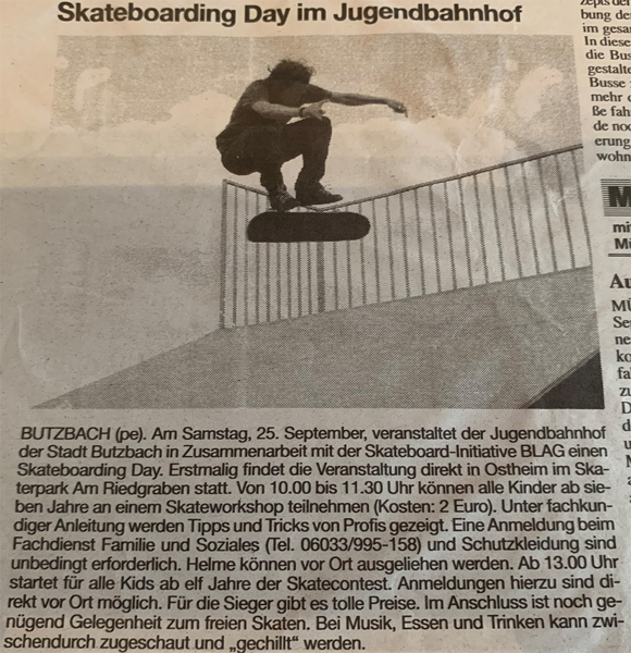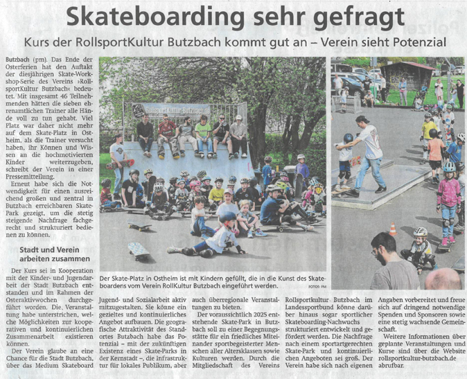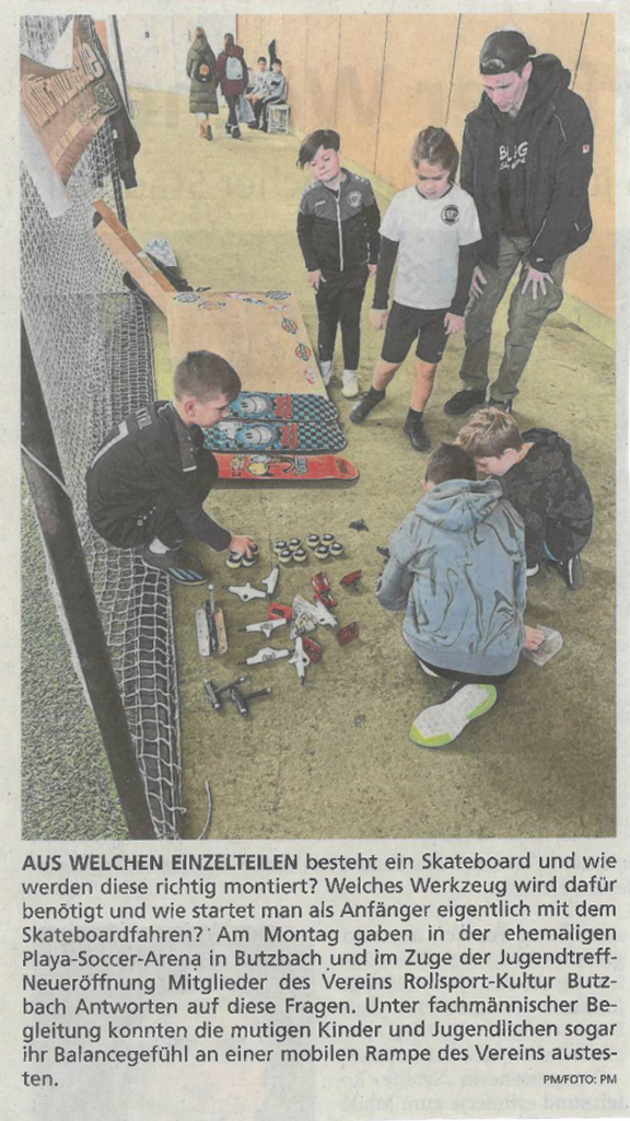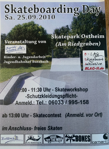 11.04.2026 | Hinweis: Der Skateboard Anfänger-Workshop am Skateplatz Ostheim (Weinstr. 6a) findet wieder innerhalb der Osteraktiv-Wochen der Stadt Butzbach statt. |